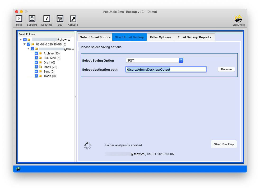 - Now, go back to “Start Email Backup” and press the Start Backup button.