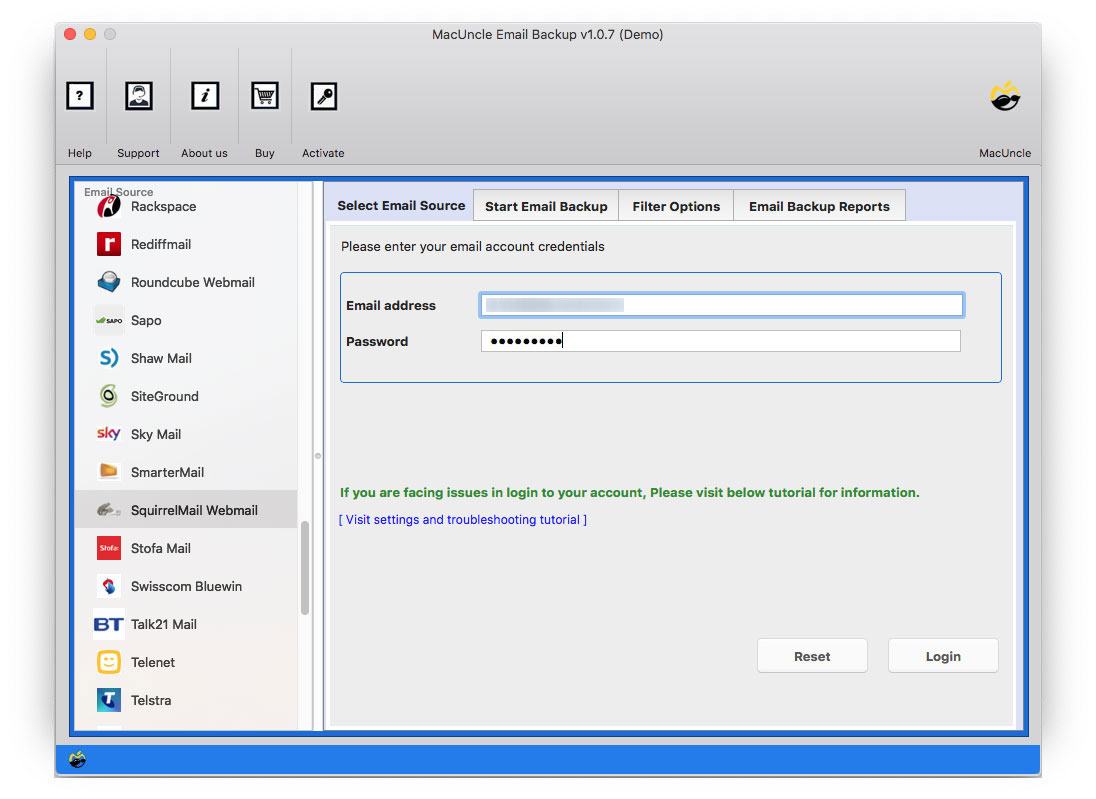 - Start the tool and select SquirrelMail Webmail from Email Source.