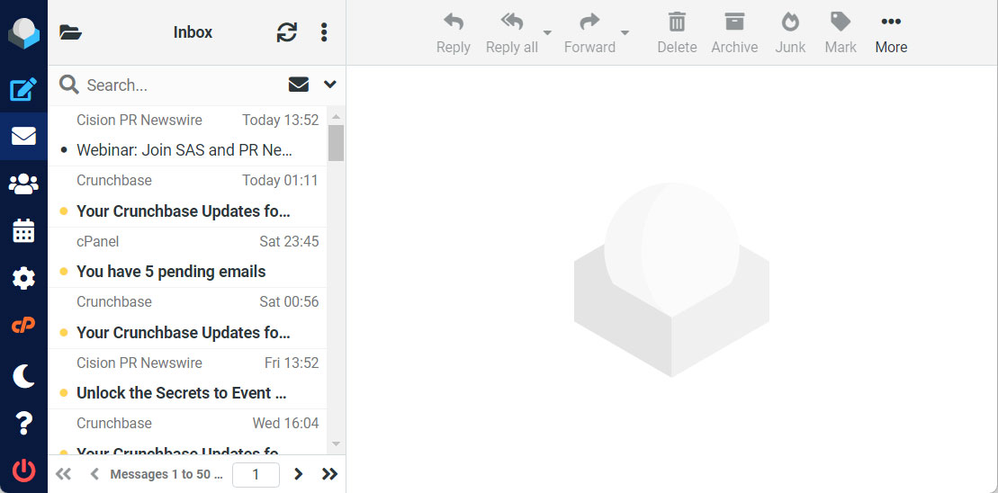 Roundcube Webmail is an open-source webmail client that opens it up to the user. It is most commonly used with control panels for web hosting, such as cPanel, Plesk, and DirectAdmin. Roundcube offers a rich feature set, making it versatile to work with as a mail client on both personal and professional fronts.