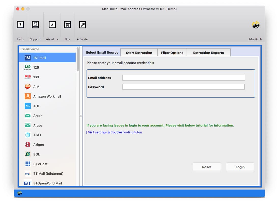 It can extract email addresses from about 40+ email service clients including Apple Mail, Outlook, Gmail, etc. thus offering you a wide range of choices. It not only extracts the email IDs from the Two files but also the CC and BCC fields.